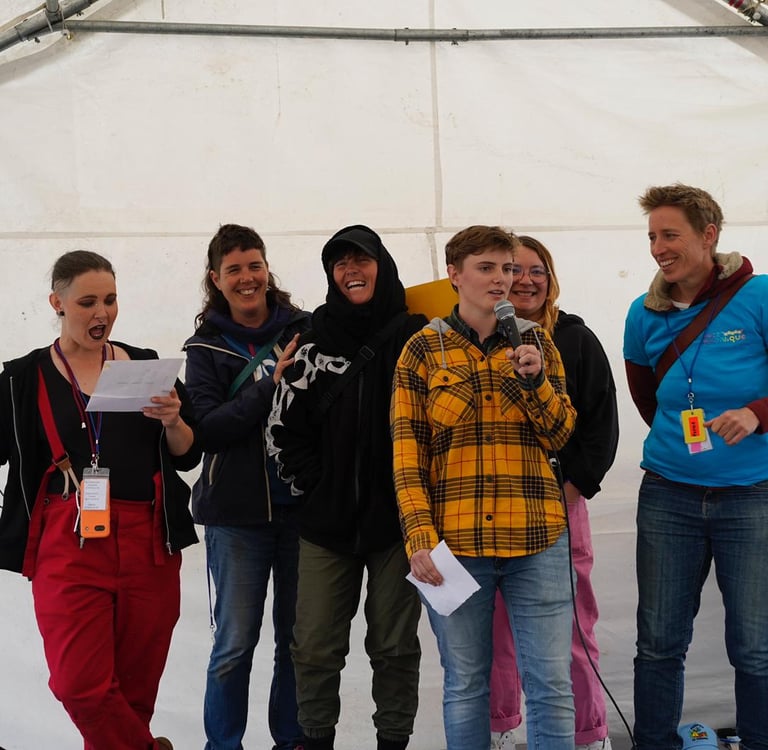 Depuis la Lezboum en août 2023, notre intention est de créer des espaces pour se retrouver, se rencontrer, rigoler, danser... en se sentant comme à la maison.
