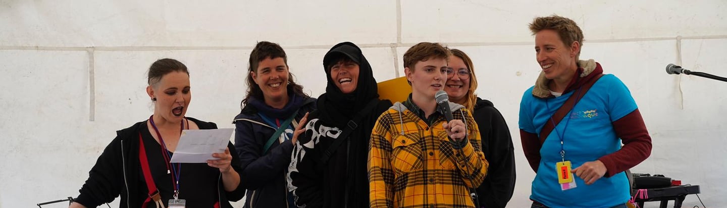 Depuis la Lezboum en août 2023, notre intention est de créer des espaces pour se retrouver, se rencontrer, rigoler, danser... en se sentant comme à la maison.
